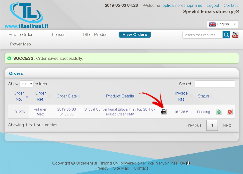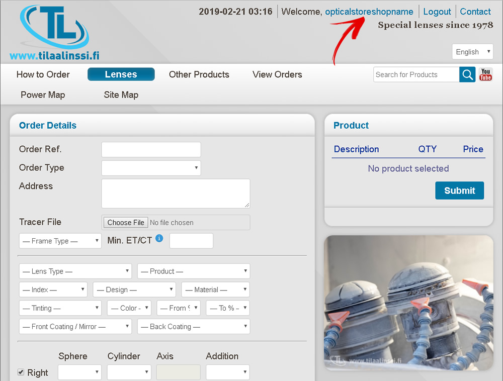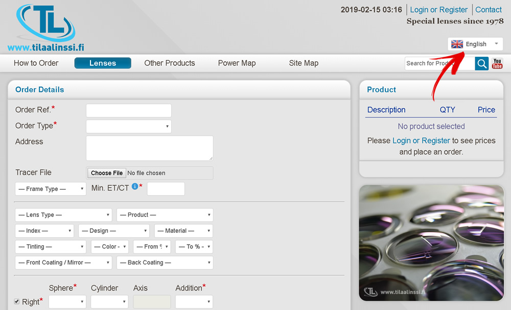 With the search bar you can quickly find products that you are looking for. For example, if you are looking for Bifocal with 1.67 index, you can type “1.67 bifocal” into the search field:
